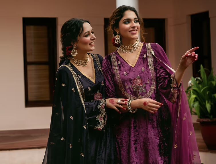 Draped in elegance, this black ensemble exudes timeless charm. The rich silk fabric and golden embroidery reflect grace, sophistication, and the perfect blend of tradition and style. WHAT'S YOUR VIBE? MOST LOVED ITEMS Men Women Kids Teal Blue Velvet Indo Western RS 20,999 Pistachio Sorbet Embroidered Crop Top Lehnga RS 17,999 Ice Blue Indo Western Set RS 6,999 IN THE SPOTLIGHT WEDDING SECTION ACHKAN SHERWANI BRIDAL LEHNGA LAYERED INTO WESTERN SECURE PAYMENTS MADE IN INDIA ASSURED QUALITY EMPOWERING POWERS Facebook-f Twitter Tumblr ATTIRES Men's Wear Women's Wear Kid's Wear Useful Links Contact Us Blog FAQ's Terms and Conditions Privacy Policy Contact Soleilskincare@mail.com (336) 685-0024